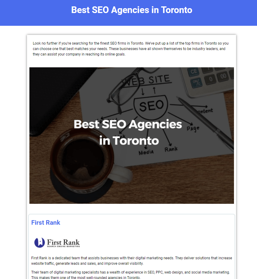 First Rank is delighted to share that we have been named one of the best SEO agencies in Toronto.