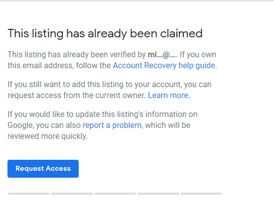 The business will already be claimed. In this case, you’ll get a message that looks like this: