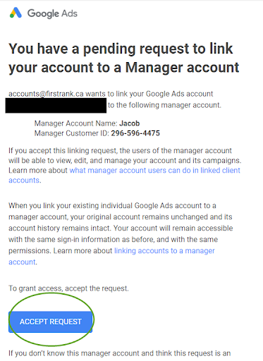 Google Ads are an effective way to reach anyone who uses Google as a search engine. If you’re here, it means you’re willing to work with us and share access to your Google Ads account. In order to proceed, you will first need to provide access to our team. Granting access will ensure that anyone who needs to get into the account can do so without needing to request access. It’s also a protective measure to keep your information safe. There’s no need to worry. You will still be able to view and access your Google Ads account as we assist you during your campaign.